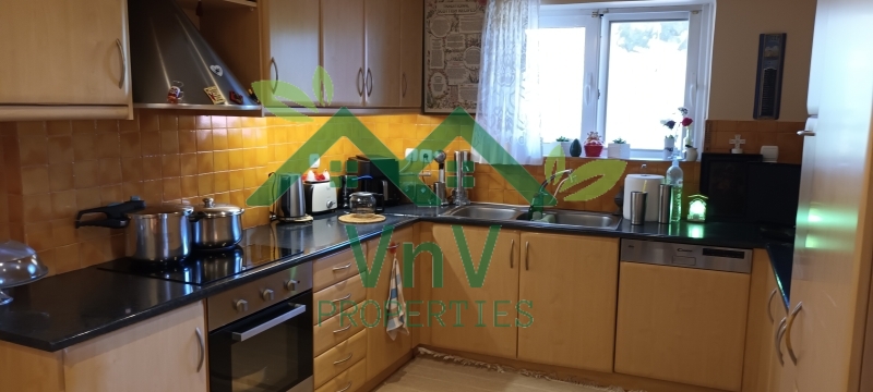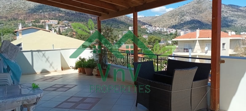 , σε τέσσερα επίπεδα, κατασκευής 2003, με πανοραμική θέα σε βουνό και θάλασσα που μαγνητίζει το βλέμμα. Η κατοικία διαθέτει ασανσέρ, ηλιακό θερμοσίφωνα, νυχτερινό ρεύμα, δορυφορική εγκατάσταση, εσωτερικές σκάλες και αυτόνομη θέρμανση πετρελαίου ανά όροφο. Επιπλέον, προσφέρει κλιματισμό, τζάκι, BBQ, αποθηκευτικό χώρο, χώρο στάθμευσης, διπλά τζάμια, αλουμινένια κουφώματα και δάπεδα από πλακάκι.